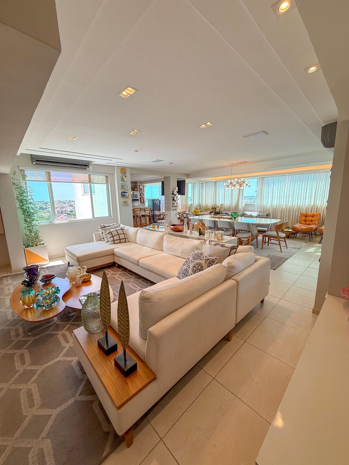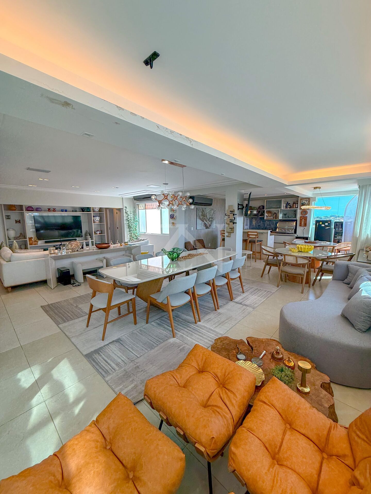 - Varias salas integradas integrados, com vários ambientes totalmente decorados, dentre eles, uma área gourmet completa com churrasqueira e bar, perfeitos para receber amigos e familiares.