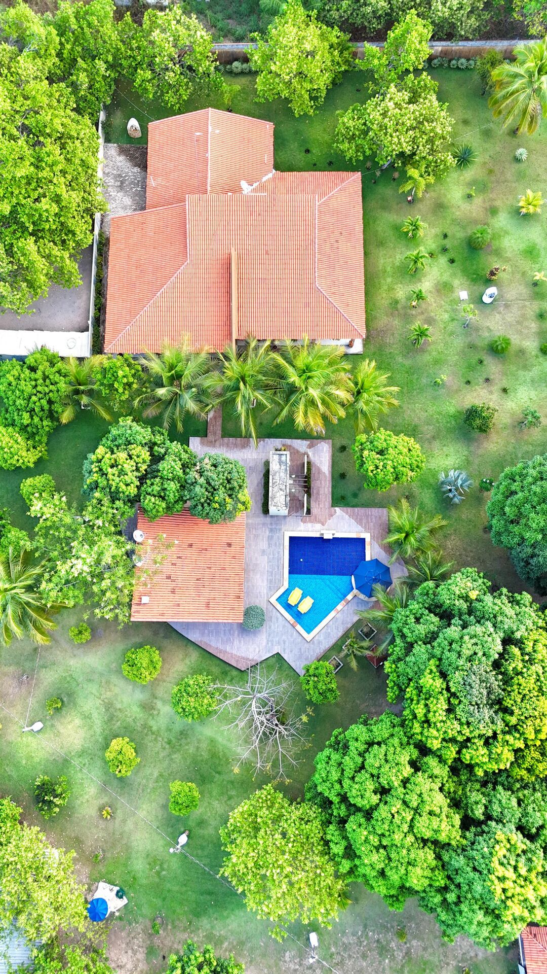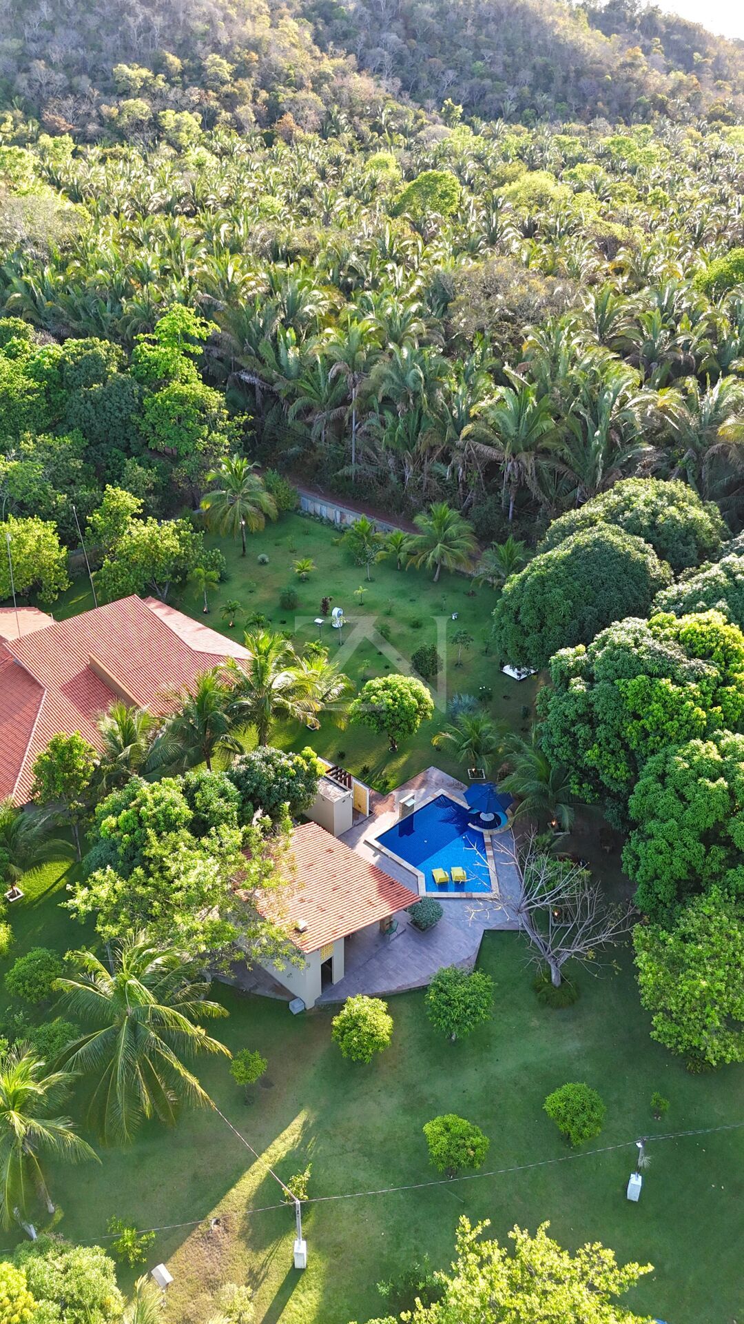 - Sistema de irrigação automatizado, cisterna de 16 mil litros, e um sistema de bombas planejado para abastecer a casa e a área de apoio.