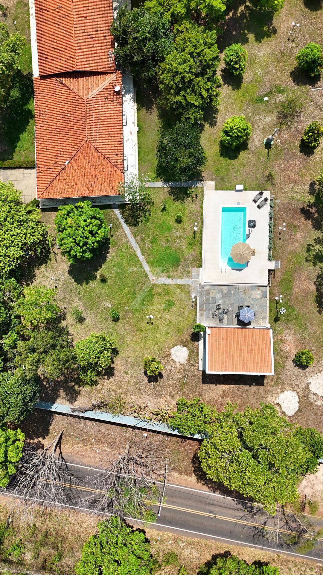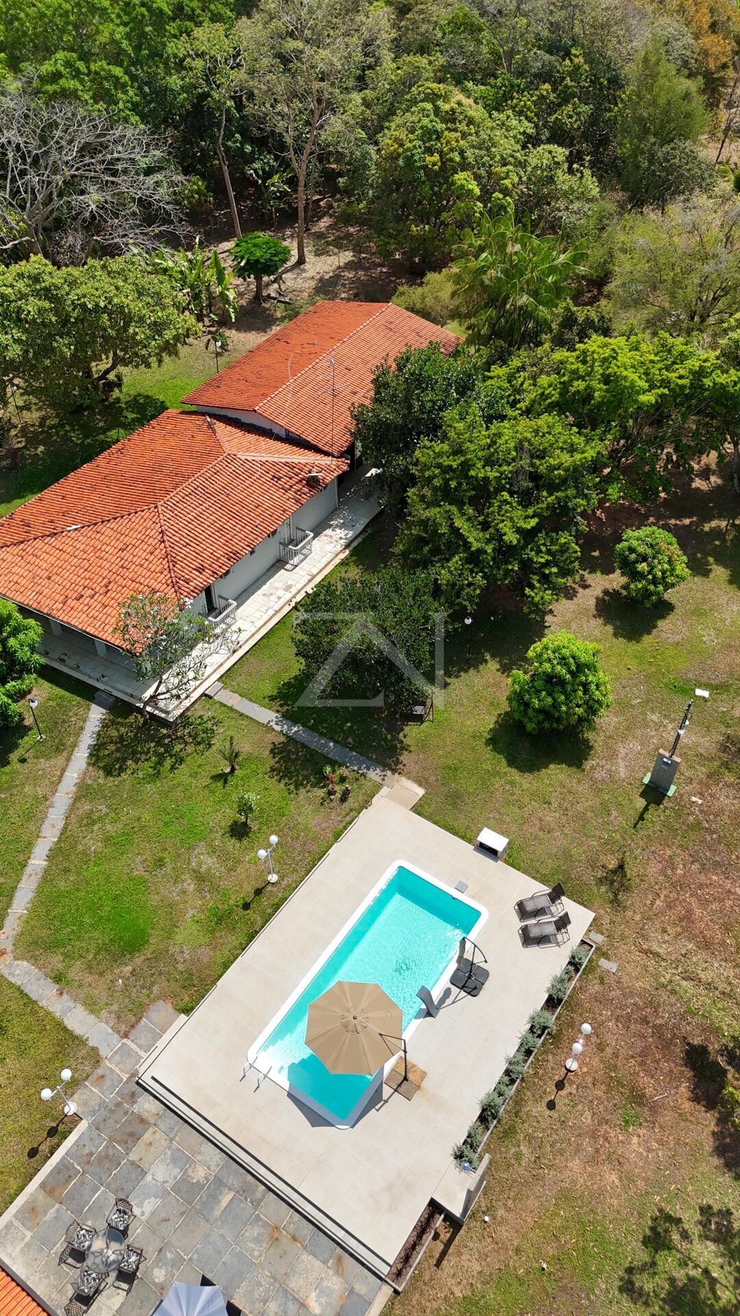 Terreno de 4,3 hectares, plano e muito arborizado, oferecendo um ambiente natural e tranquilo.